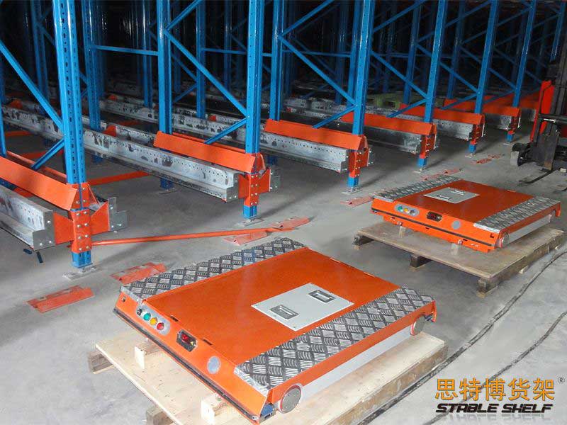 穿梭板貨架是一種高效、高密度、低成本的存儲方式,與貫通貨架相比,存儲能力相當(dāng),但安全可靠,貨架不容易損壞;此種貨架需要與穿梭車配合適用,在搭載可充電電池的驅(qū)動下,穿梭小車在軌道上行駛,進入了一個特別設(shè)計的貨架隧道,利用提升平板和定位傳感器,每個貨物將被運輸?shù)剿淼纼?nèi)最遠處的存儲位置。 存取貨物都可以很方便地通過遙控控制由叉車進行操作。