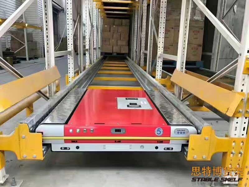 穿梭貨架是一種高效、高密度、低成本的存儲方式,與貫通貨架相比,存儲能力相當(dāng),但安全可靠,貨架不容易損壞;此種貨架需要與穿梭車配合適用,在搭載可充電電池的驅(qū)動下,穿梭小車在軌道上行駛,進入了一個特別設(shè)計的貨架隧道,利用提升平板和定位傳感器,每個貨物將被運輸?shù)剿淼纼?nèi)最遠處的存儲位置。 存取貨物都可以很方便地通過遙控控制由叉車進行操作。